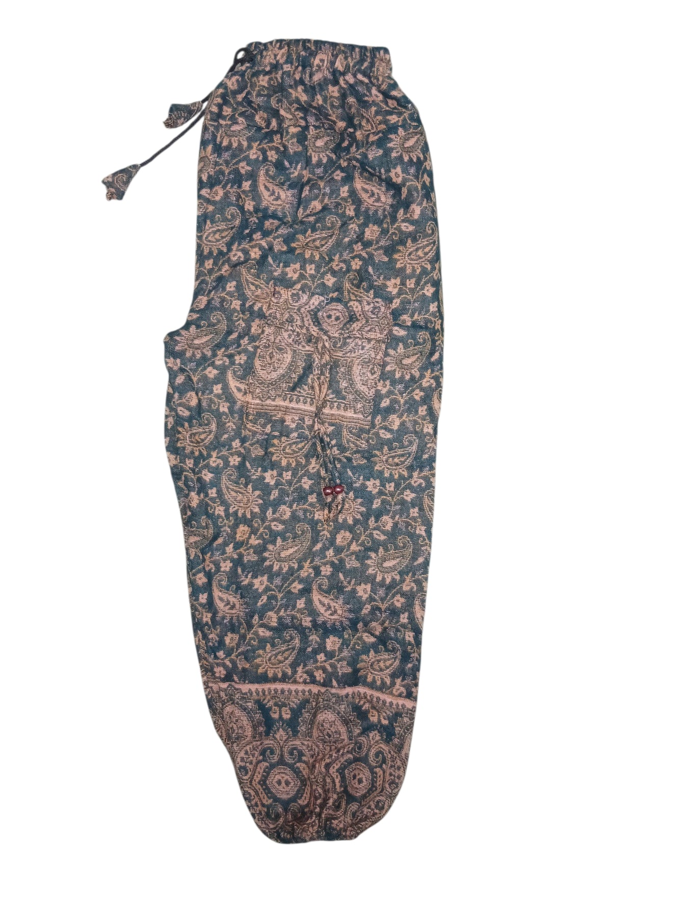 Bohotusk Green Brown Paisley Fleece Harem Pants One Size