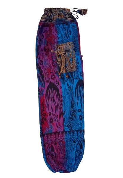 These beautifully crafted trousers are hand made in India. They are constructed from a 100% man-made Fleece fabric, that provides a warmer hard wearing harem trousers for the winter months. They are stylish, strong & resilient.